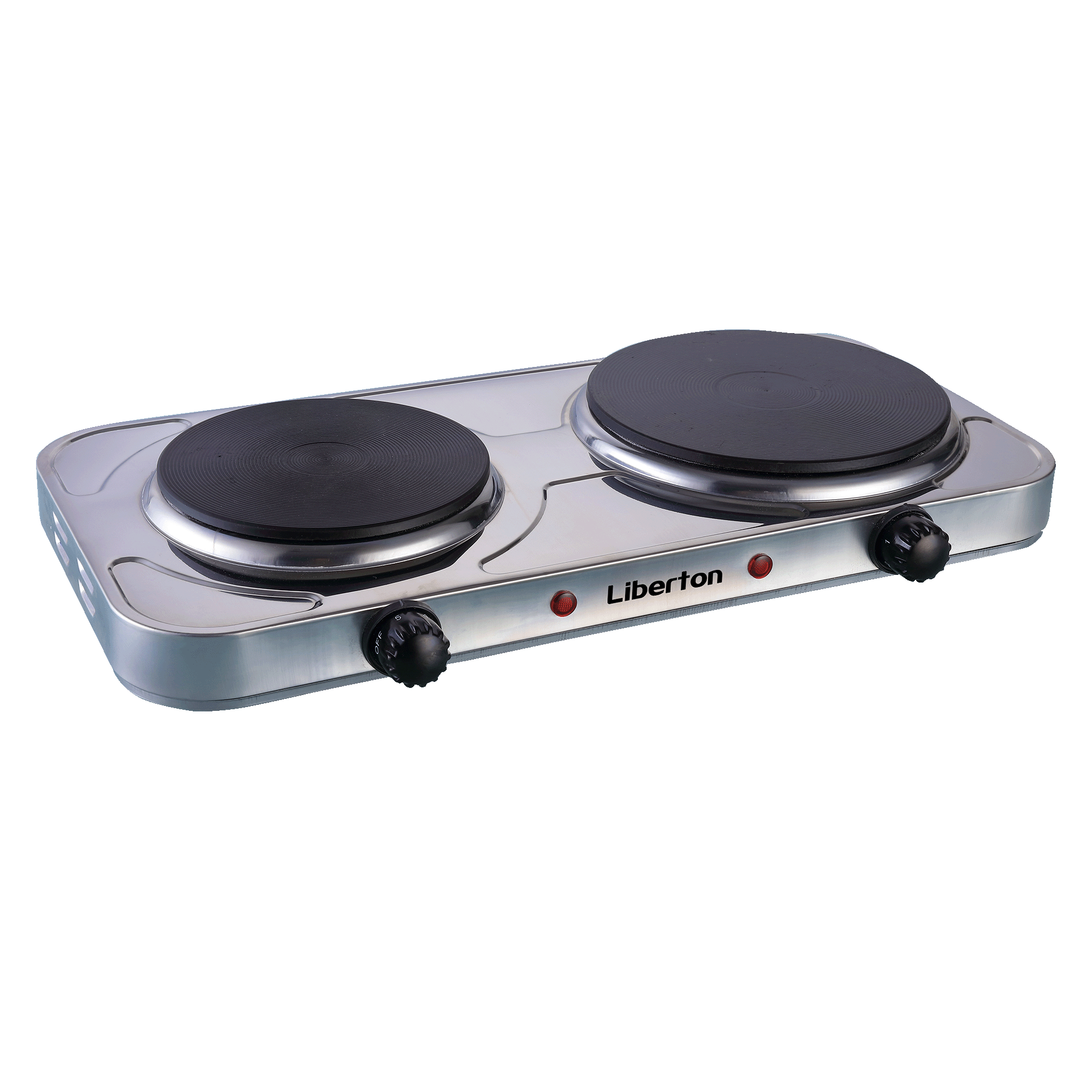 Потужність: 2000 Вт (1000+1000); Кількість конфорок: 2; Матеріал конфорки: чавун; Додаткові функції: поворотний перемикач, автовідключення, індикатор роботи, регульований термостат; Матеріал корпусу: метал; Розмір виробу: 47,8х23,5х6,8 см; Колір: нерж.