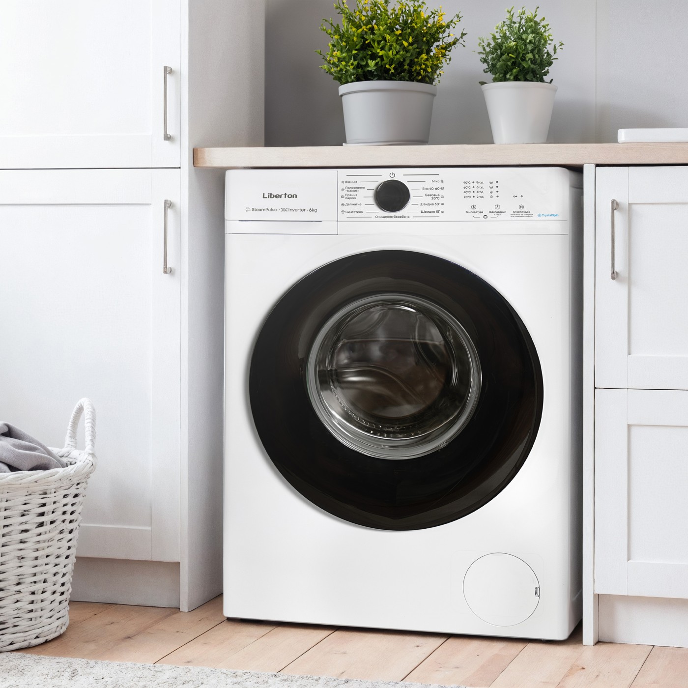 Завантаження, кг: 6; Тип двигуна: інверторний BLDC Inverter; Тип: автомат, фронтальна; Привід: ремінний; Макс. швидкість віджиму, об/хв: 1200; Клас енергоспоживання: A; Клас віджиму: B; Дісплей: ні; Кількість програм: 11 (Мікс, Еко 40-60, Бавовна 20, Швидке прання 30, Швидке прання 15, Віджим, Полоскання+Віджим, Прання парою, Делікатні вироби, Синтетика, Очищення барабану); Функції: вибір температури прання, очищення барабану, таймер відстрочки старту, захист від дітей, дозавантаження старт/пауза, контроль дисбалансу, контроль піноутворення, інтелектуальна система прання; Рівень шуму під час прання, дБ: 60; Рівень шуму під час віджимання, дБ: 72; Матеріал корпусу: пластик; Розмір виробу, см: 59,8х84,5х40,5; Колір: білий.