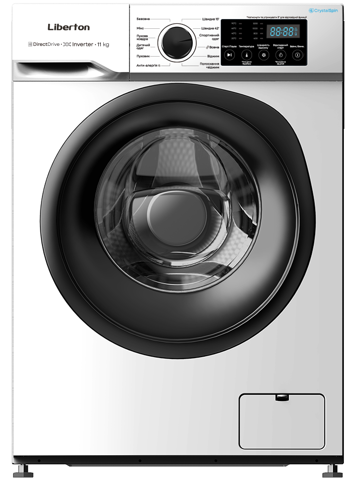 Завантаження, кг: 11; Тип двигуна: інверторний DD; Тип: автомат, фронтальна; Привід: ремінний; Макс. швидкість віджиму, об/хв: 1200; Клас енергоспоживання: D; Клас віджиму: B; Дісплей: так; Кількість програм: 12 (Бавовна, Спортивний одяг, Вовна, Пухова коврда, Дитячий одяг, Швидке прання 15, Полоскання+Віджим, Віджим, Делікатне прання, Мікс, Швидке прання 42, Анти-алергія, Пуховик) ; Функції: функція пам'яті автоматичний перезапуск, додаткове ополіскування, вибір температури прання, вибір швидкості віджиму, очищення барабану, таймер відстрочки старту, захист від дітей, дозавантаження старт/пауза, контроль дисбалансу, контроль піноутворення, інтелектуальна система прання; Рівень шуму під час прання, дБ: 52; Рівень шуму під час віджимання, дБ: 68; Матеріал корпусу: пластик; Розмір виробу, см: 59,5×85×56; Колір: білий.