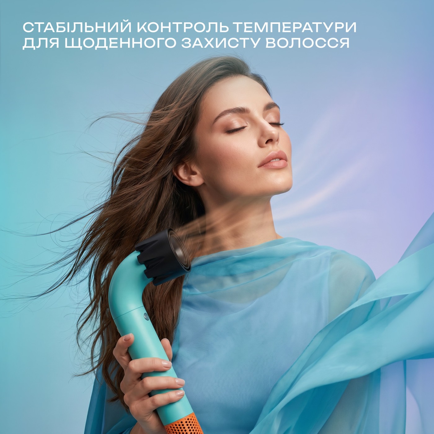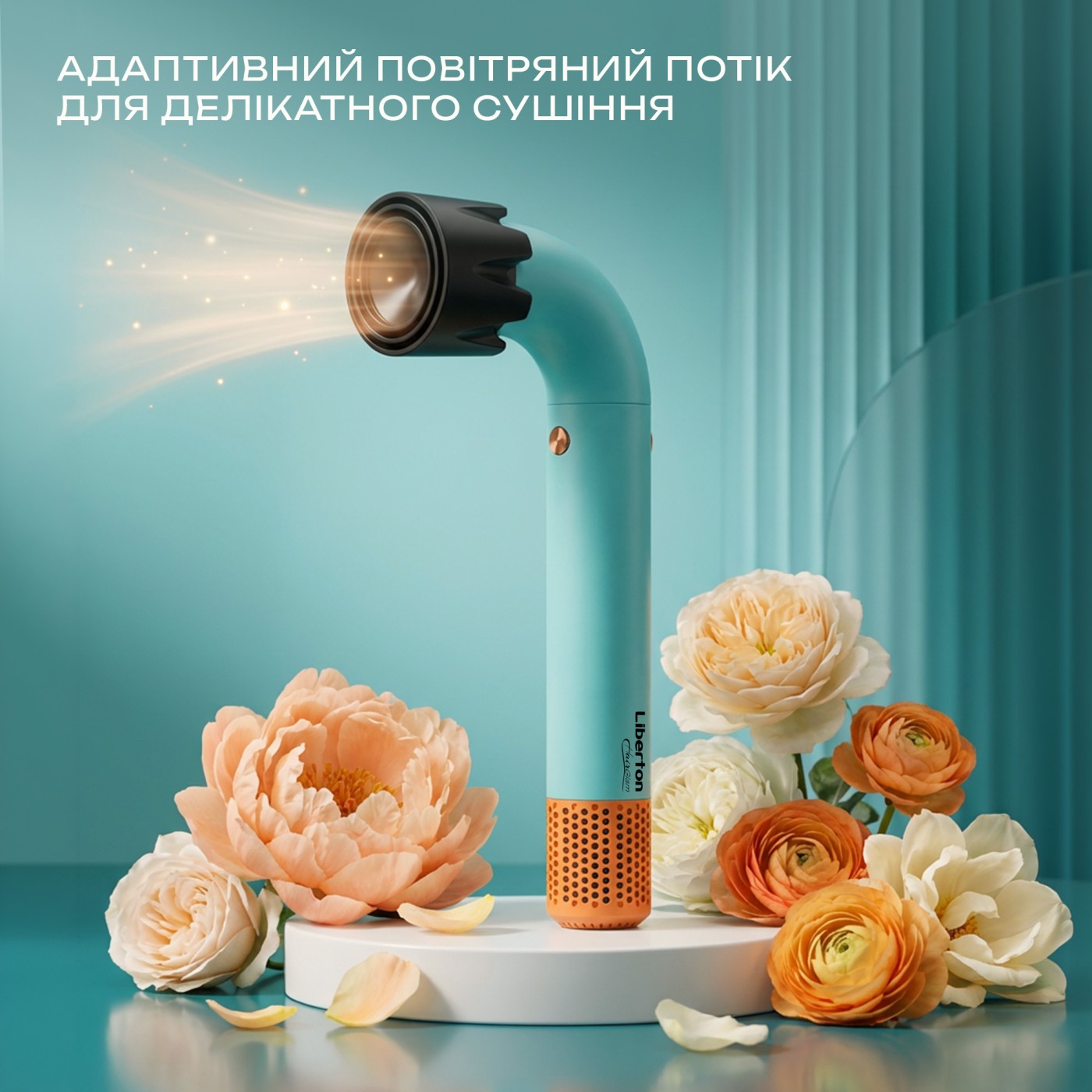 Тип: звичайний; Тип мотора: BLDC; Потужність, Вт: 1200; Кількість швидкісних режимів: 3; Кількість температурних режимів: 4; Кількість насадок в комплекті: 3; Насадка: концентратор, дифузор, для м'якого сушіння; Подавання холодного повітря: є; Особливості: магнітні насадки, захист від перегріву; Довжина шнура: 2,0 м; Матеріал корпусу: пластик; Розмір виробу (Ш×В×Г), см: 8×29×4 см; Колір: бірюзовий.