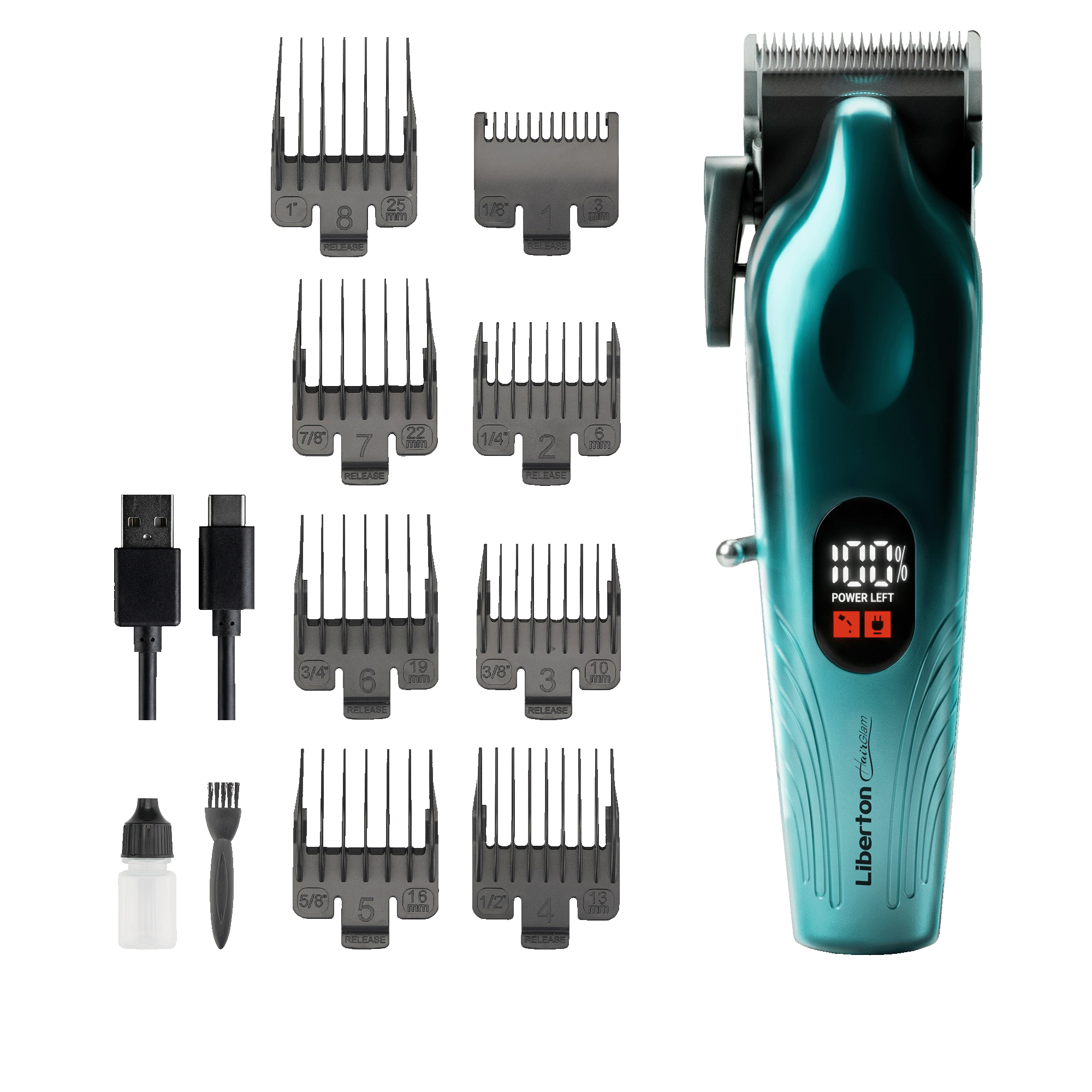 Потужність, Вт: 5; Насадки гребінці: для регулювання довжини; Кількість насадок в комплекті, шт: 8; Матеріал леза: нержавіюча сталь; Діапазон налаштування довжини, мм: 3-25; Регульований рівень леза, мм: 0.7, 1.4, 2.1, 2.8; Тип живлення: мережа/акумулятор; Час зарядки, год: 2; Час роботи, год: 3; Аксесуари: щіточка для чищення, мастило, USB-кабель (type C); Особливості: LED дисплей, можливість роботи під час зарядки; Матеріал корпусу: пластик; Розмір виробу, см: 5,3х17,8х4,1; Колір: чорно-бірюзовий.
