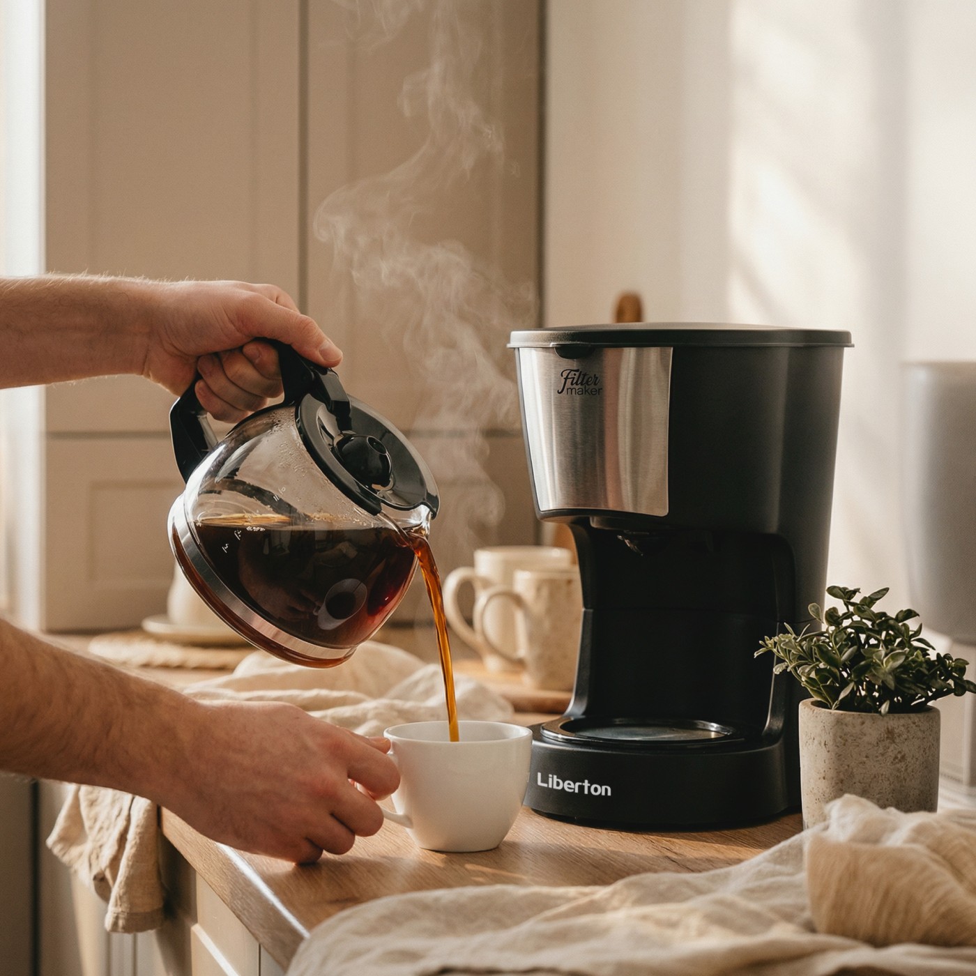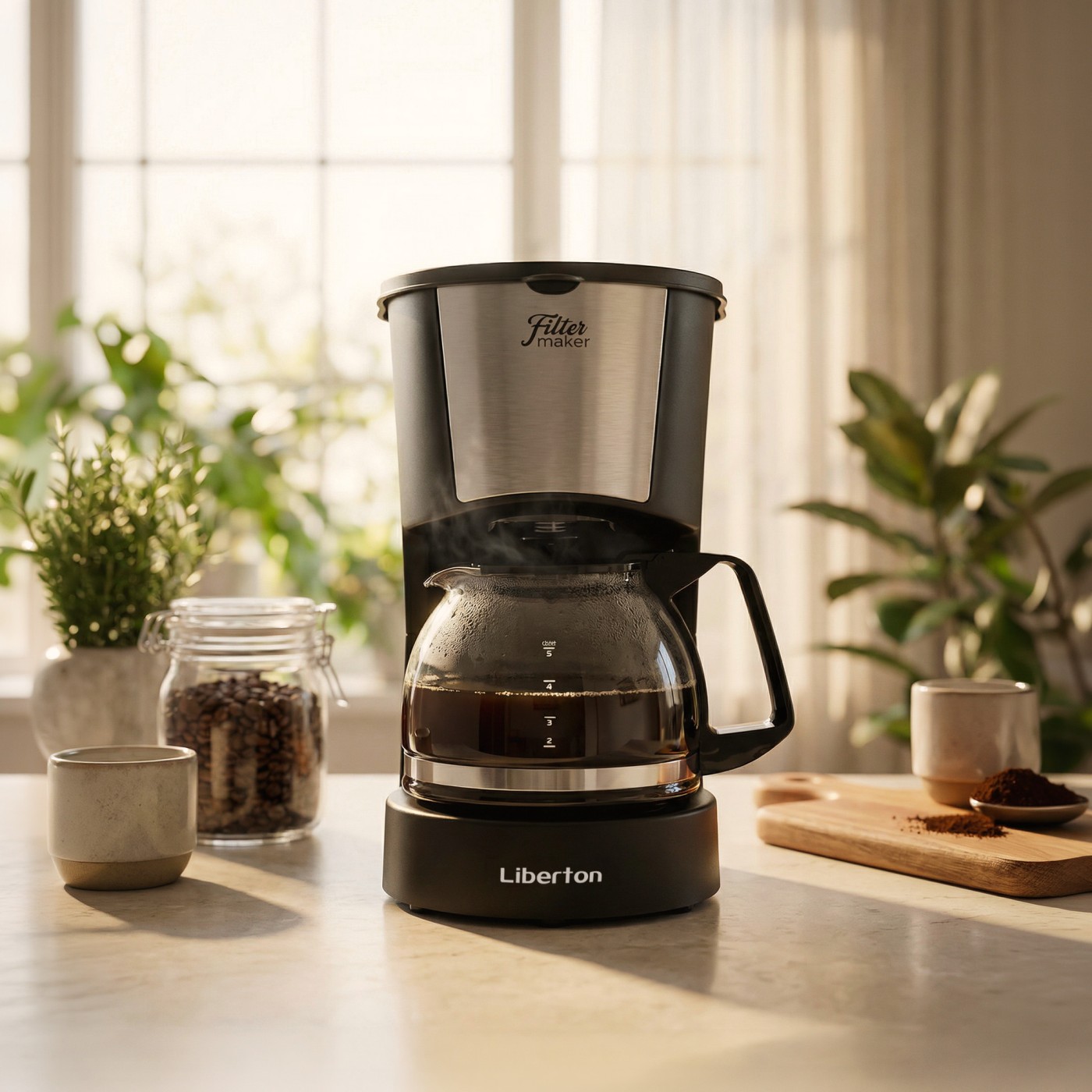 Тип кавоварки: крапельна; Потужність: 600 Вт; Тип управління: механічне; Ємність резервуара для води: 0,6 л; Кількість чашок готового напою: 5 шт.; Тип кави: мелена; Тип фільтра: багаторазовий; Особливості: автоматична підтримка температури, підігрівання кавника, протикрапельна система, захист від перегріву, індикатор увімкнення, індикатор рівня води, мірна ложка; Матеріал корпусу: пластик+нержавіюча сталь; Матеріал кавника: високотемпературне скло; Розмір виробу: 18,4х14,4х24,2 см; Колір: чорний+срібло.