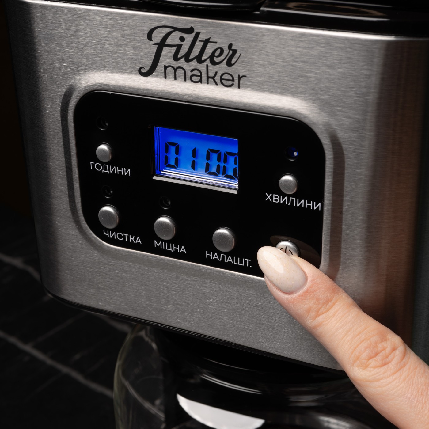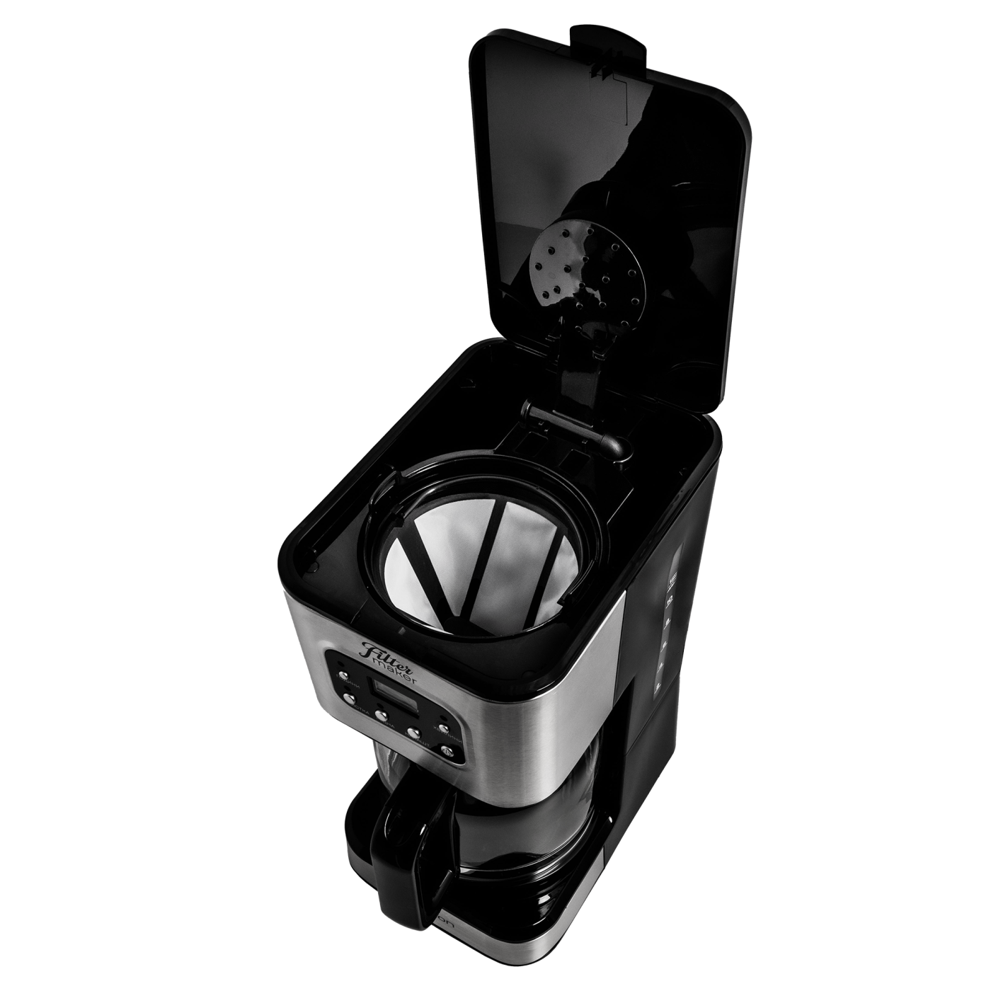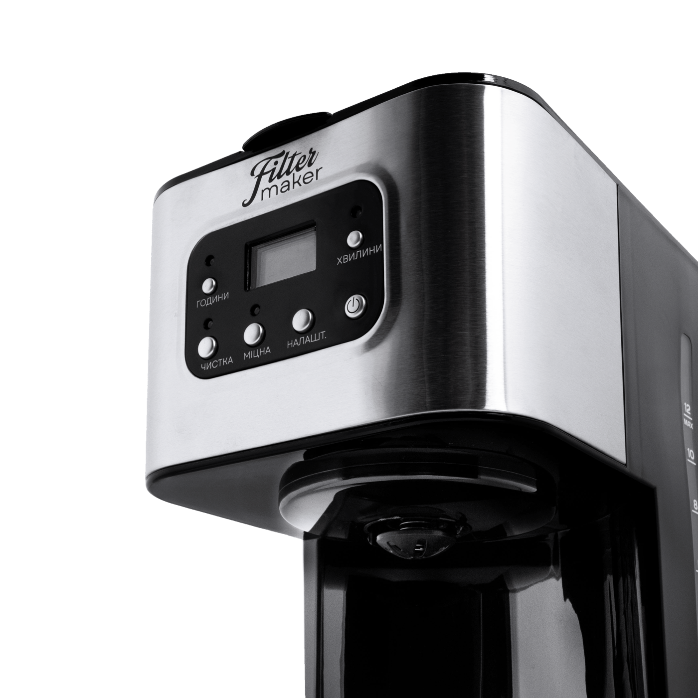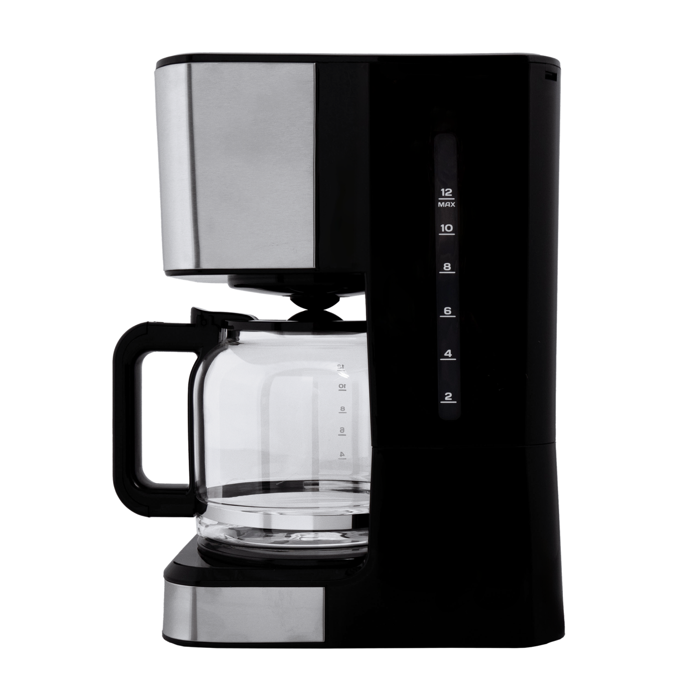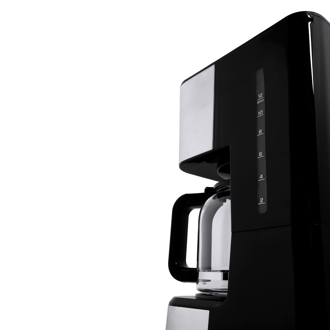 Тип кавоварки: крапельна; Потужність: 950 Вт; Тип управління: електронне; Ємність резервуара для води: 1,5 л; Кількість чашок готового напою: 12 шт.; Тип кави: мелена; Тип фільтра: багаторазовий; Особливості: регулювання міцності кави, автоматична підтримка температури, підігрівання кавника, автоматичне відключення, програма очистки, протикрапельна система, дисплей, годинник, таймер (24 години), захист від перегріву, індикатор увімкнення, індикатор рівня води, мірна ложка; Матеріал корпусу: пластик+нержавіюча сталь; Матеріал кавника: високотемпературне скло; Розмір виробу: 16,8х32,3х23 см; Колір: чорний+срібло.