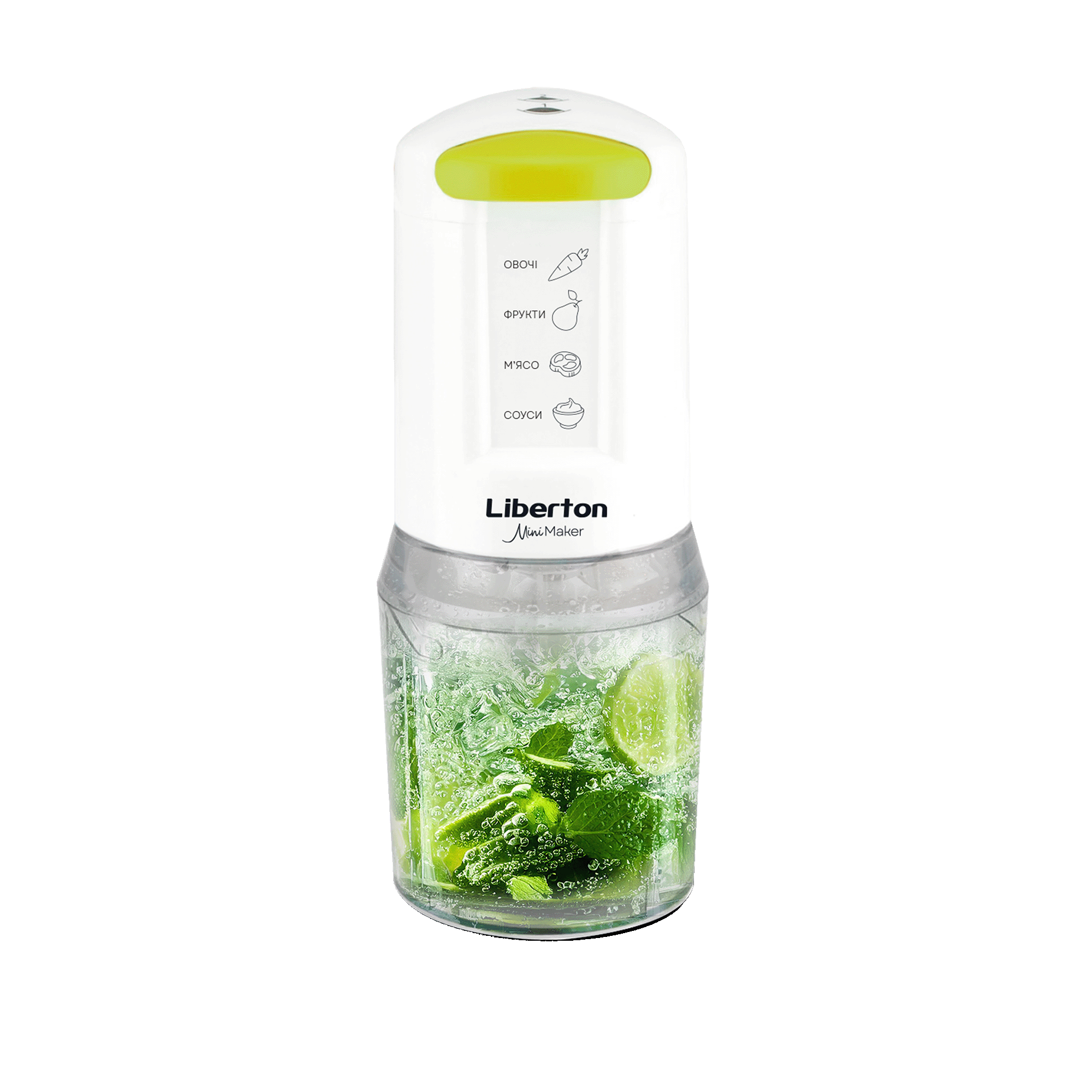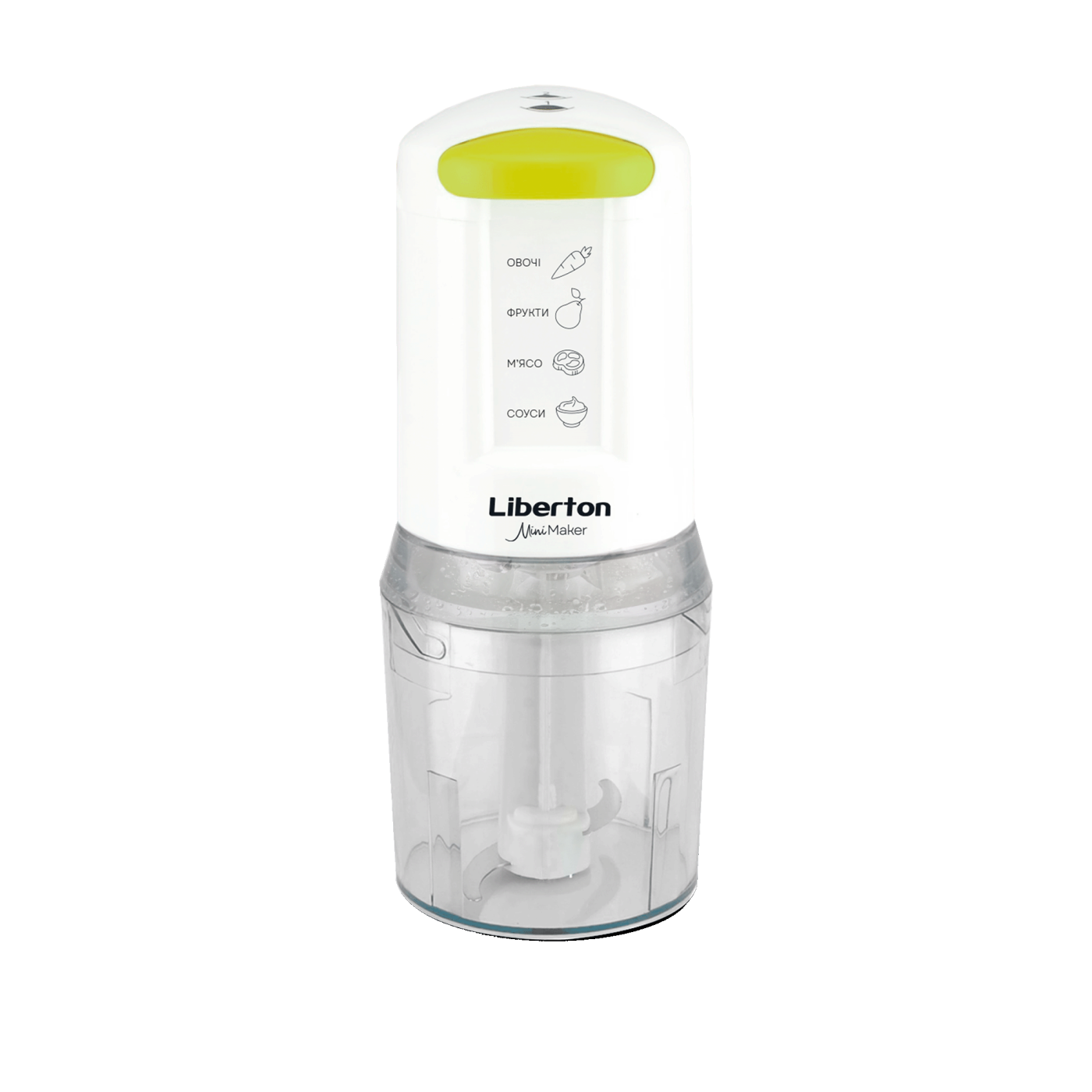Потужність: 400 Вт; Тип: стаціонарний; Кількість швидкостей: 2; Плавне регулювання: ні; Об'єм чаші, мл.: 500; Ніж: нержавіюча сталь; Матеріал корпусу: пластик; Розмір виробу, см: 10,0x22,5x10,5; Колір: білий.