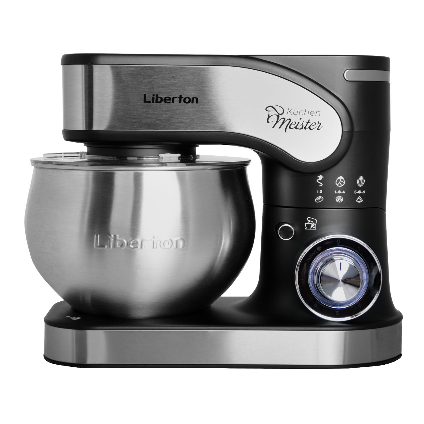 Потужність: 2000 Вт; Кіл-ть швидкостей: 6; Режим "Пульс": так; Насадки: гак для тіста, плоский збивач, вінчик, лопатка з пластику; Матеріал насадок: нержавіюча сталь; Кнопка вилучення насадок: так; Матеріал корпусу: пластик+нержавіюча сталь; Об'єм чаші: 5 л, Матеріал чаші: нержавіюча сталь; Розмір виробу: 37х29х22 см; Колір: чорний + нержавіюча сталь.