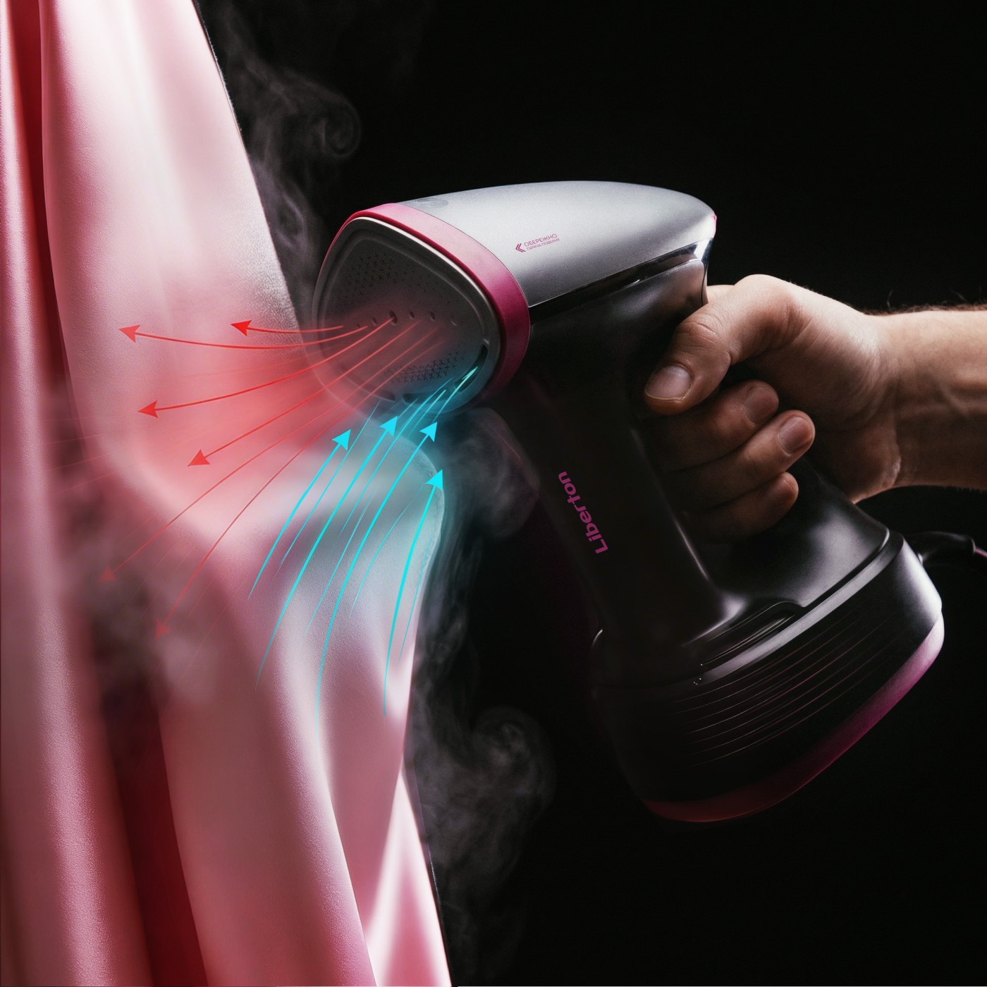 Потужність, Вт: 1600; Об'єм резервуару, мл: 400; Рівні подачі пари, кіл-ть.: 2; Режими вакууму кіл-ть.: 2; Потік пари, г/хв: 20; Матеріал підошви: алюміній з керамічним покриттям; Горизонтальне/вертикальне відпарювання: так; Опції: тиск вакууму: 4000 Па, LED-індикація, сенсорне керування, захист від перегріву, автовідключення; Комплектація: захисна рукавичка, щітка для чищення, мірна склянка; Розмір виробу, см: 13×25,9×15,3; Колір: чорний.